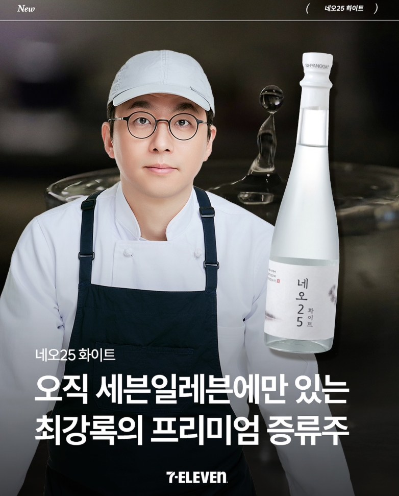 네오25화이트는 최강록 셰프와 세븐일레븐이 공동 개발한 프리미엄 쌀 증류주입니다. 2026년 1월 8일 전국 세븐일레븐 매장에서 출시되었습니다.