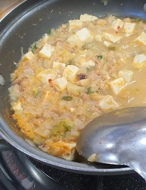 청국장 국물이 묵직하면서도 부드럽고 걸쭉한 질감이 특징이에요. 이게 진짜 제대로 발효시킨 청국장의 맛이거든요. 따뜻한 한 그릇이면 속이 정말 든든해질 것 같아요.