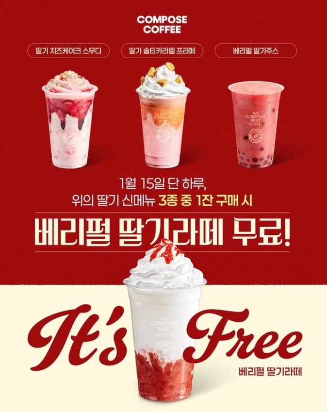 컴포즈커피 딸기 1+1 이벤트 총정리, 1월 15일 단 하루 프로모션